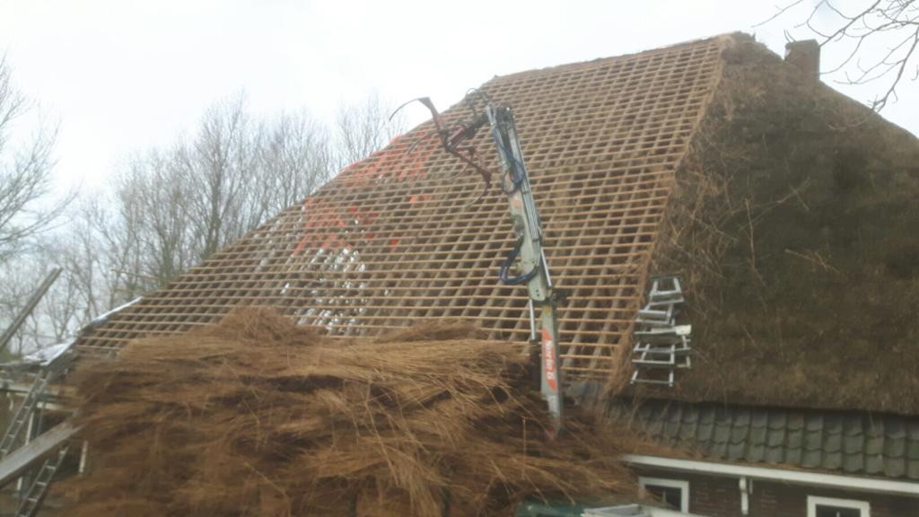 Als een dak te oud is voor reparatie moet het vervangen worden. Oud riet wordt verwijderd, eventueel latten vernieuwd, isolatie en playwood platen aangebracht en dan een nieuwe dakbedekking van tenminste 30 cm dikte aangebracht.